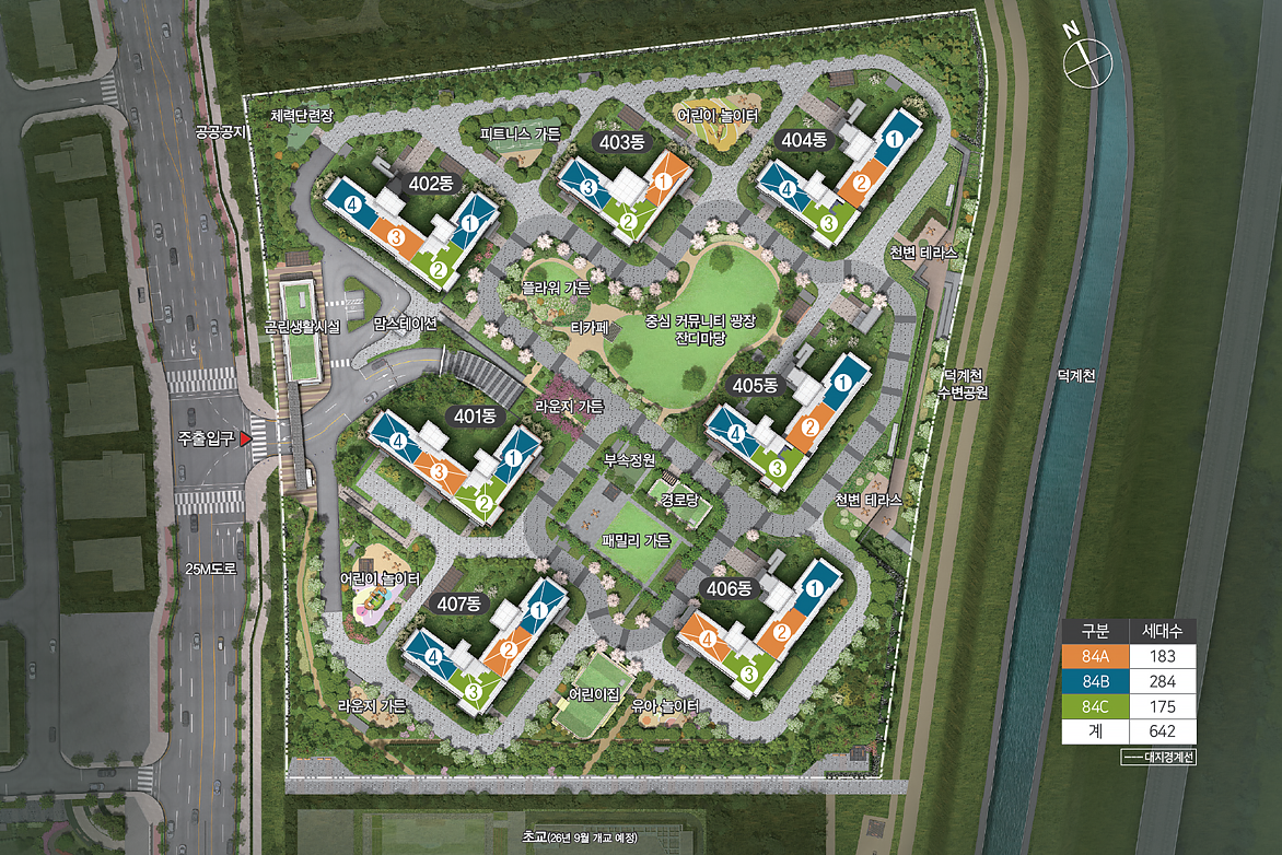 - 총 642가구, 지하 2층~지상 최고 29층, 7개 동, 전용면적 84㎡ 단일 평형