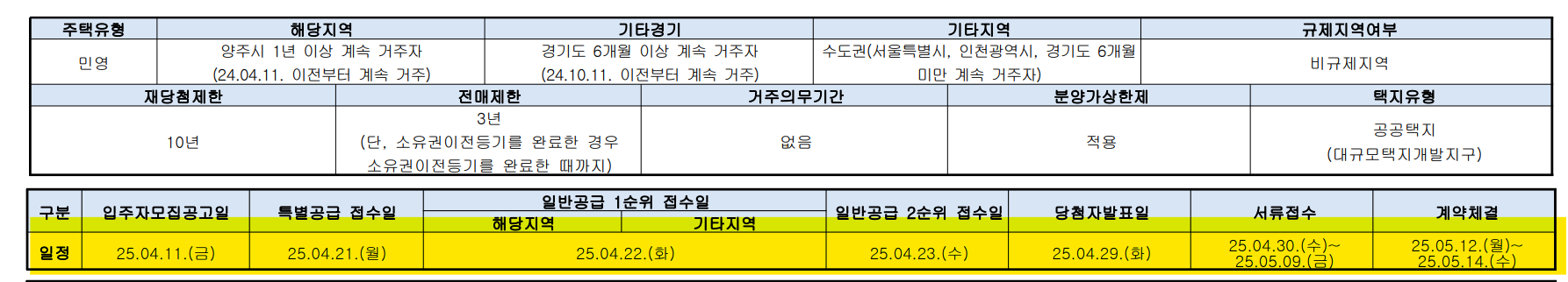 - 청약 시 양주시 거주자 우선권 부여, 추첨제 운영으로 기회 확대