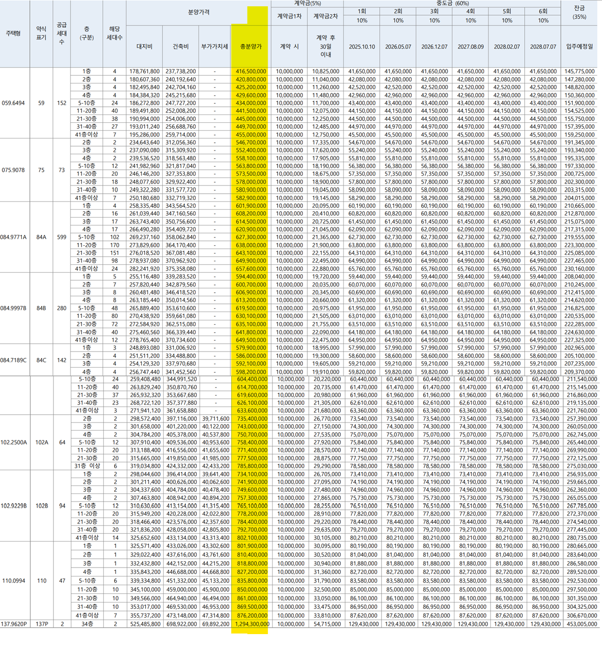 | 59 | 152 | 4억1650만원 ~ 4억5500만원 |