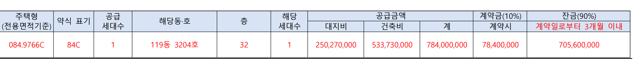 | 84 | 1 | 7억8400만원 | 119동 3204호 |