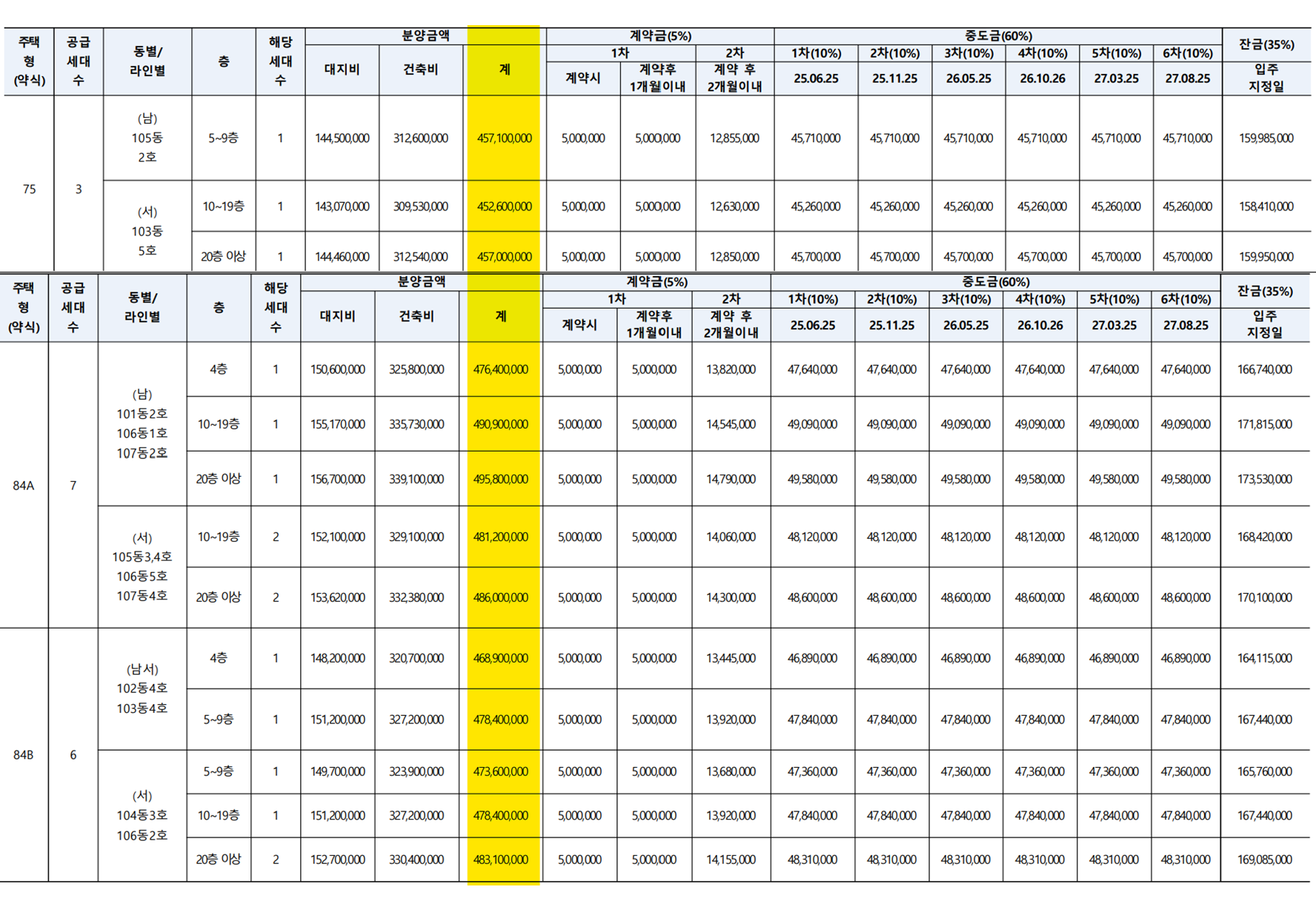 | 84B | 6 | 4억6890만원 ~ 4억8310만원 |
