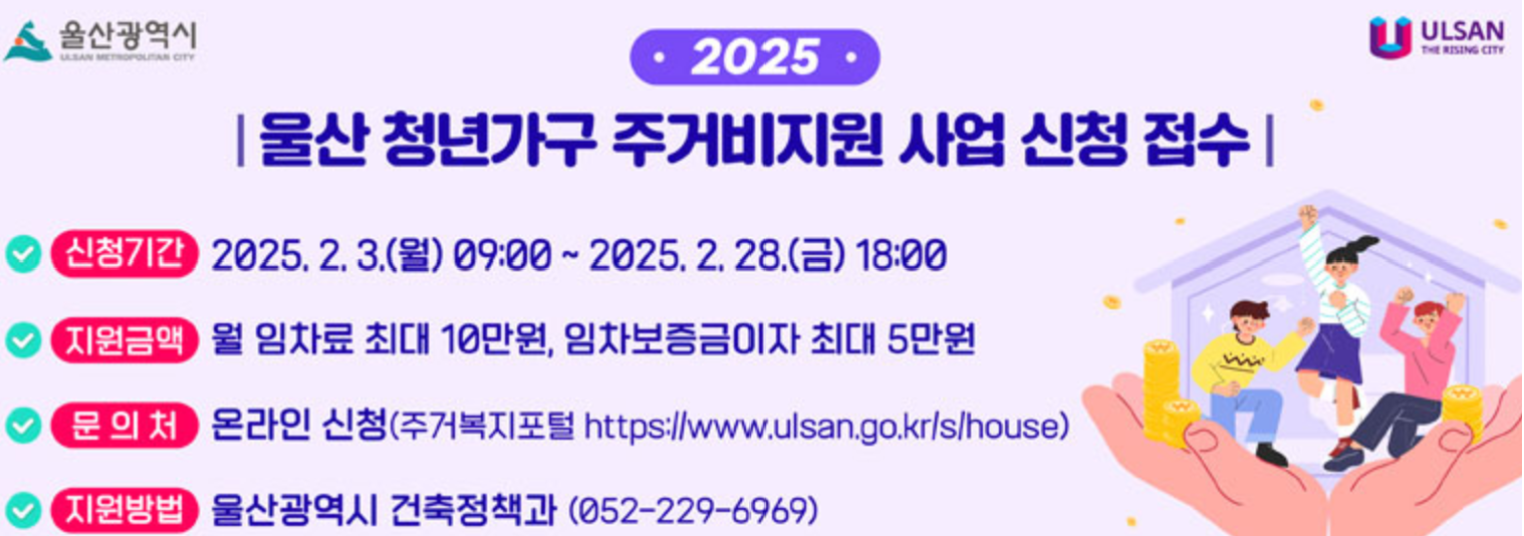 울산시 청년가구 주거비지원사업 신청시작! 본문
