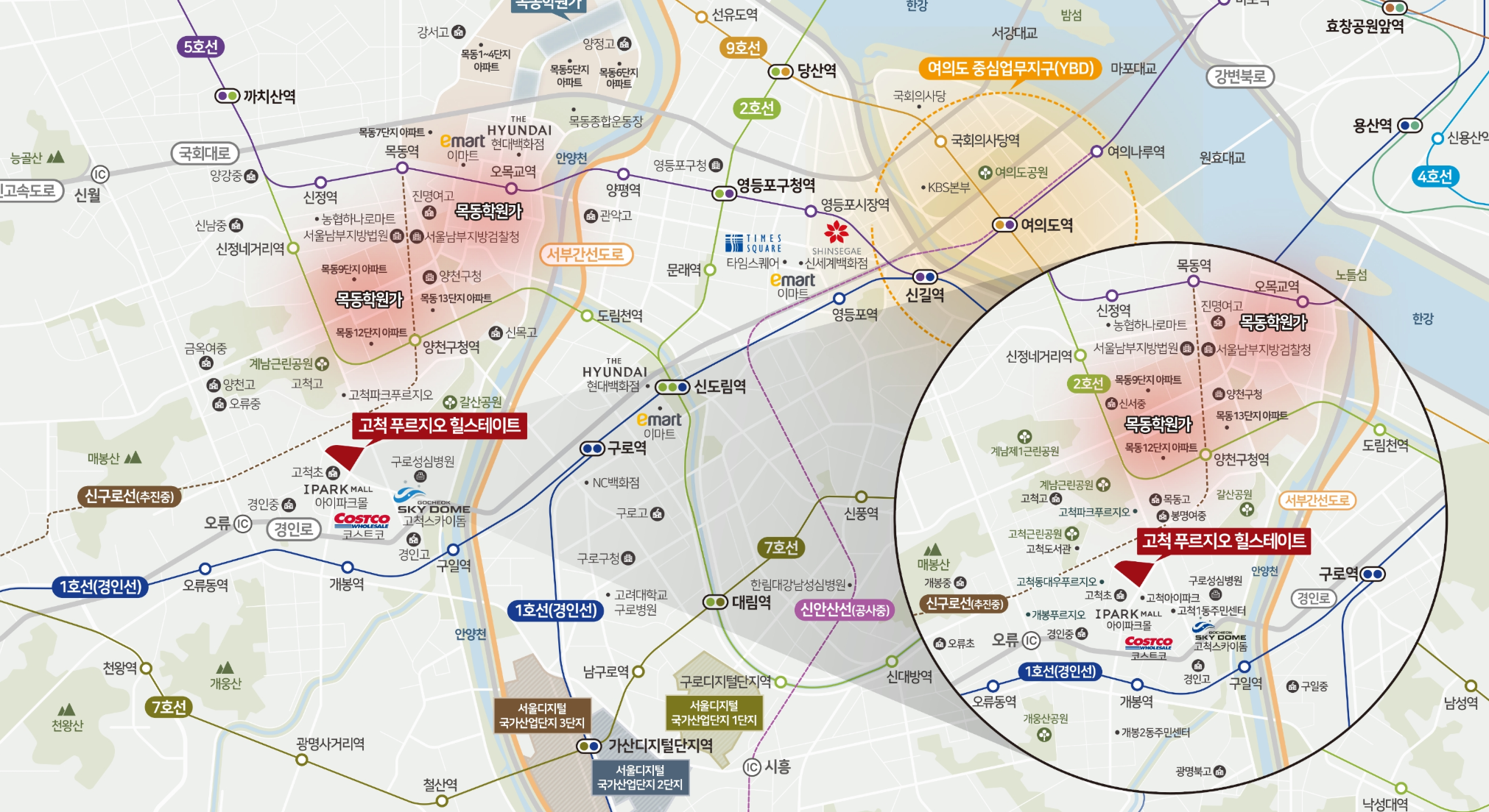 - 아이파크몰, NC백화점, 코스트코, 고척시장, 고려대 구로병원, 구로세무서, 그리고 29년 완공예정인 서울창업허브 구로 등 대형 상업·의료·공공시설이 인근에 위치하고 있습니다.