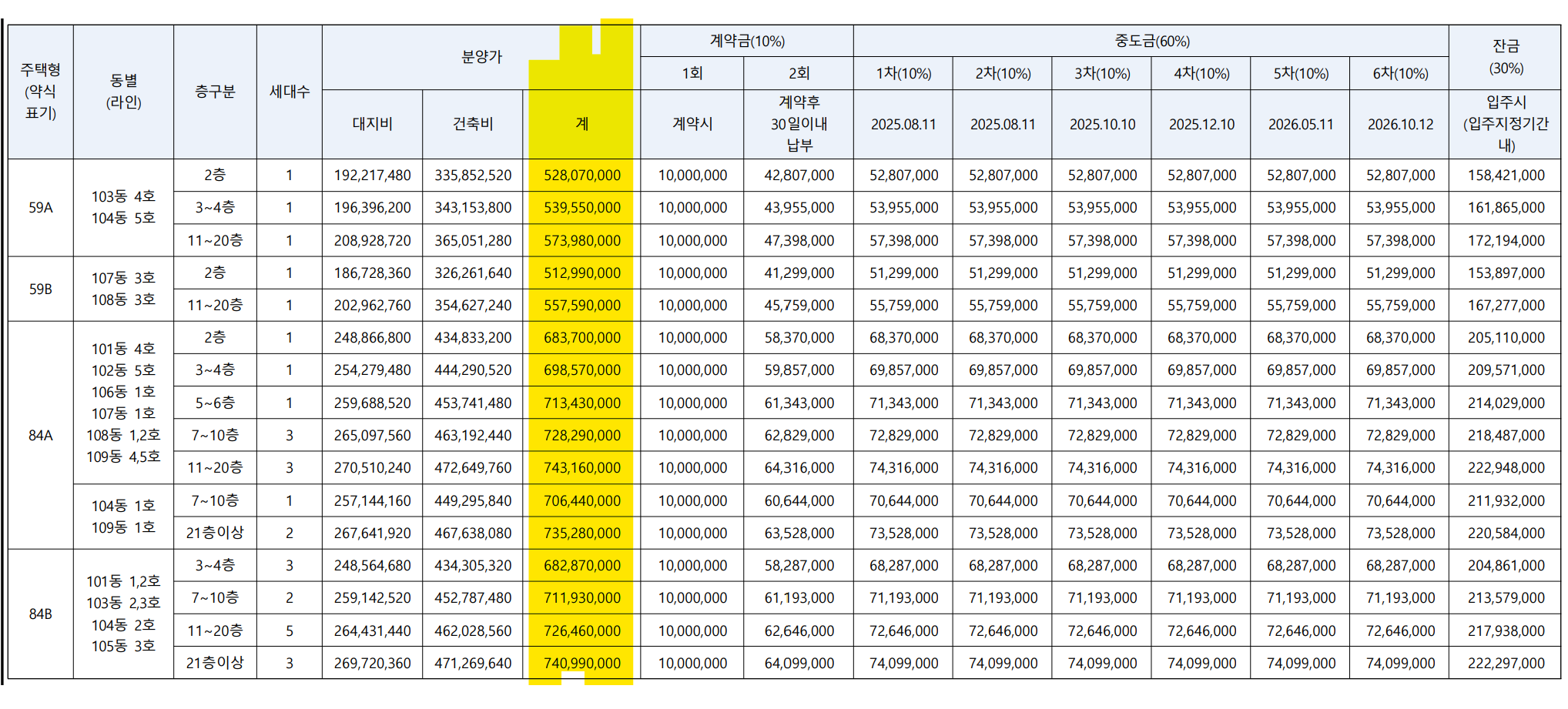 | 84A | 12 | 6억8370만원 ~ 7억4316만원 |