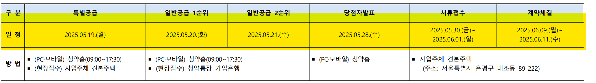서울서북권 최고 중심입지인 은평구 대조 1 구역에 총 2451 가구의 대단지 아파트가 조성된 비다. 역세권으로 3호선, 6호선의 연신내역과 10분 거리이며 교육, 생활여건도 우수하며 조경특화설계까지 도입하여 실거주 목적으로 큰 관심을 모으고 있습니다.