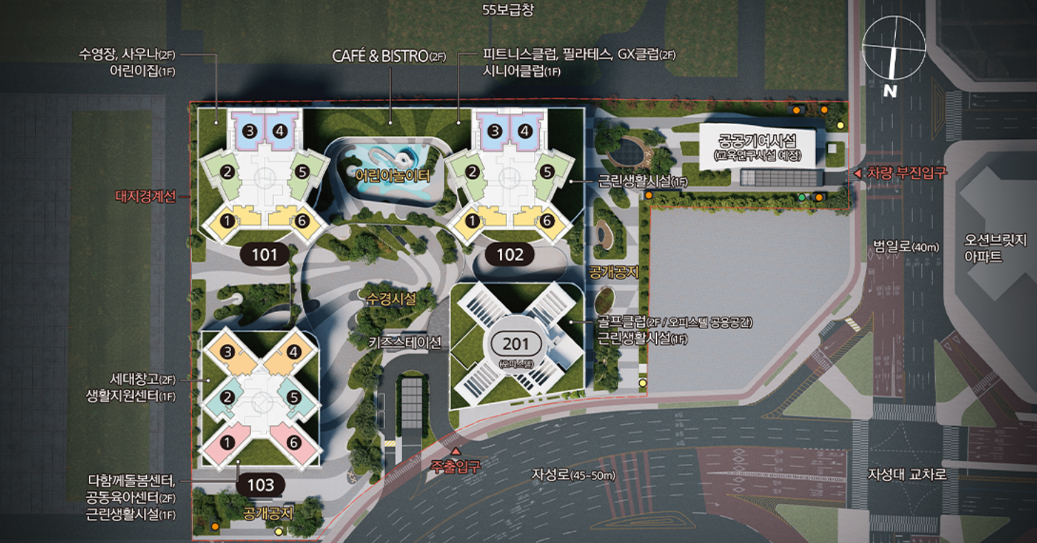 - 맞춤형 라이프 케어 서비스: 청소, 세탁, 반려동물 관리, 식사 및 건강 관리, 세무 상담 등 고급 주거에 걸맞은 맞춤형 서비스가 제공되어 입주민 편의를 극대화합니다.